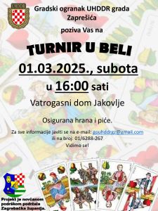 Gradski ogranak UHDDR grada Zaprešića poziva Vas na TURNIR U BELI 01.03.2025., u subotu s početkom u 16:00 sati ♠️♦️♣️♥️