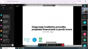 28.ožujka 2025. godine djelatnice Udruge sudjelovale su na online radionici pod nazivom “Osiguranje kvalitetne provedbe projekata financiranih iz javnih izvora” koju je financijski podržala Nacionalna zaklada za razvoj civilnoga društva. Radionica je organizirana od strane Centra za civilne inicijative.