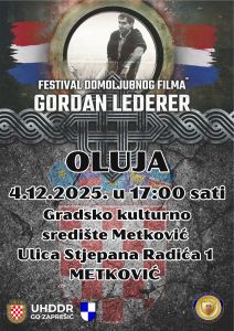 Pozivamo Vas na projekciju dokumentarnog filma Jakova Sedlara – „Oluja“, 4. prosinca 2025. godine (četvrtak) u 17:00 sati u Gradskom kulturnom središtu Metković.